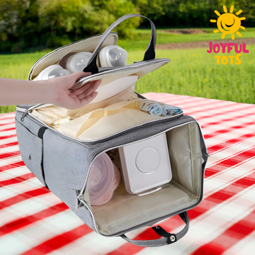 Regardez la différence ! Avec le sac à langer, tout est parfaitement organisé dans ses nombreux compartiments intelligemment conçus. Les biberons, les couches, les jouets et les lingettes sont facilement accessibles, vous permettant de profiter pleinement de chaque instant avec votre bébé